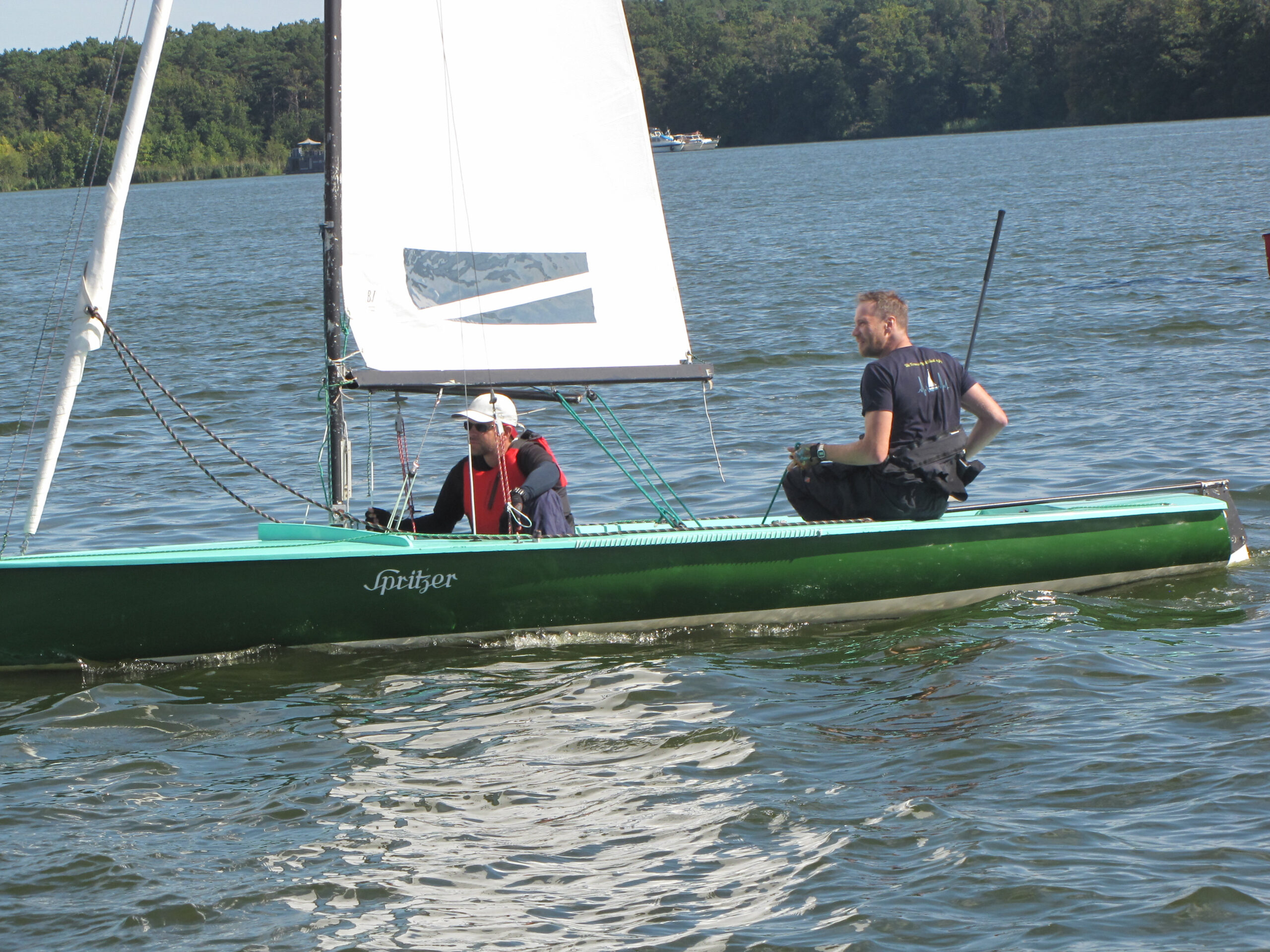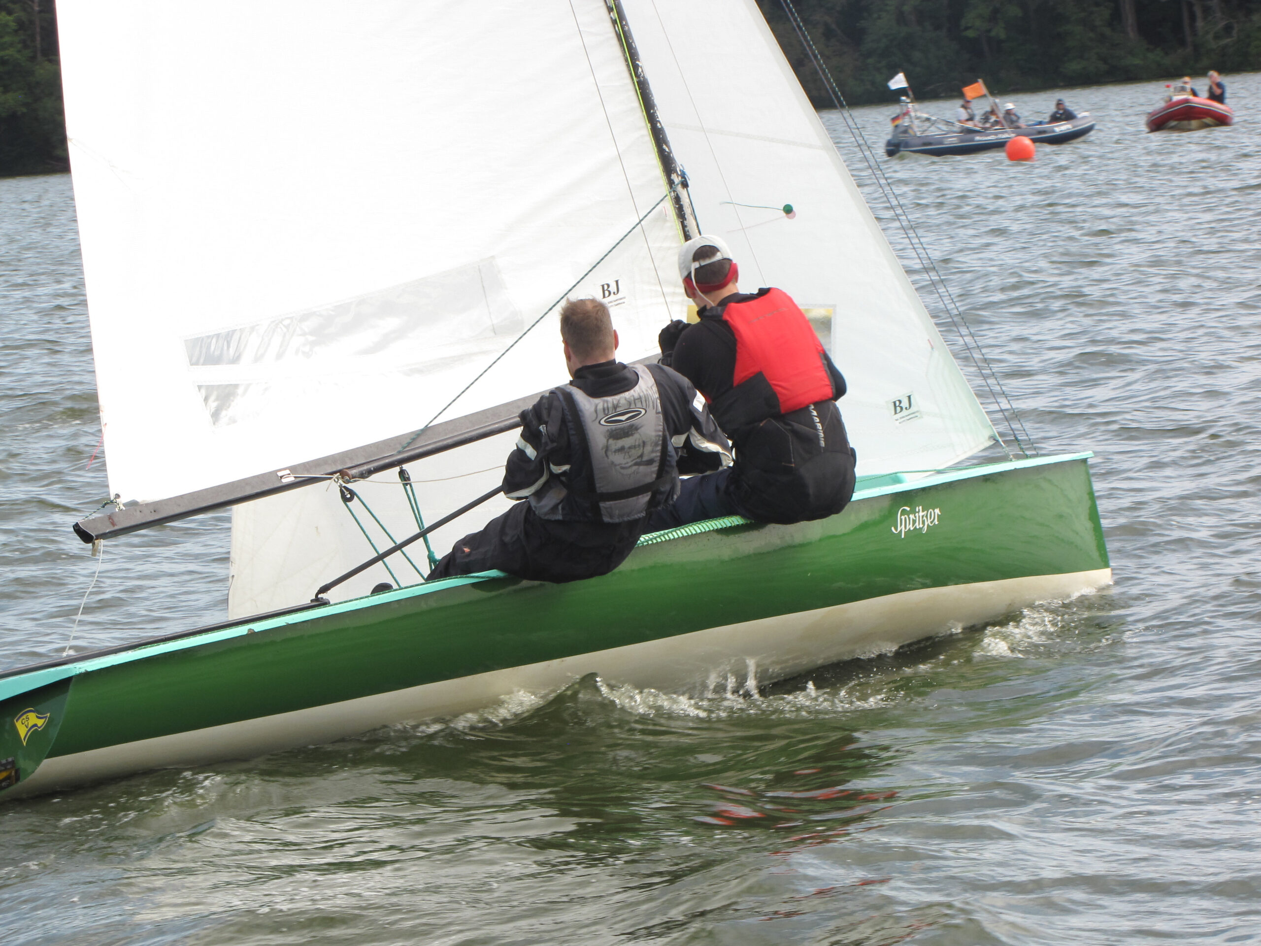 Am Sonnabend, dem 1. Wettfahrttag, wurde bei anfangs 2–3 Bft gestartet. Der Wind stand lang den Zeuthener See herunter. Die Wettfahrtleitung konnte daher einen schönen Up-and-Down-Kurs legen.