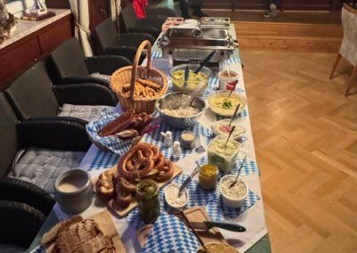 Weißwurst, Obatzter, Laugenstangen, Krautsalat, bayrischem Kartoffelsalat und liebevoll selbstgemachten Brezeln