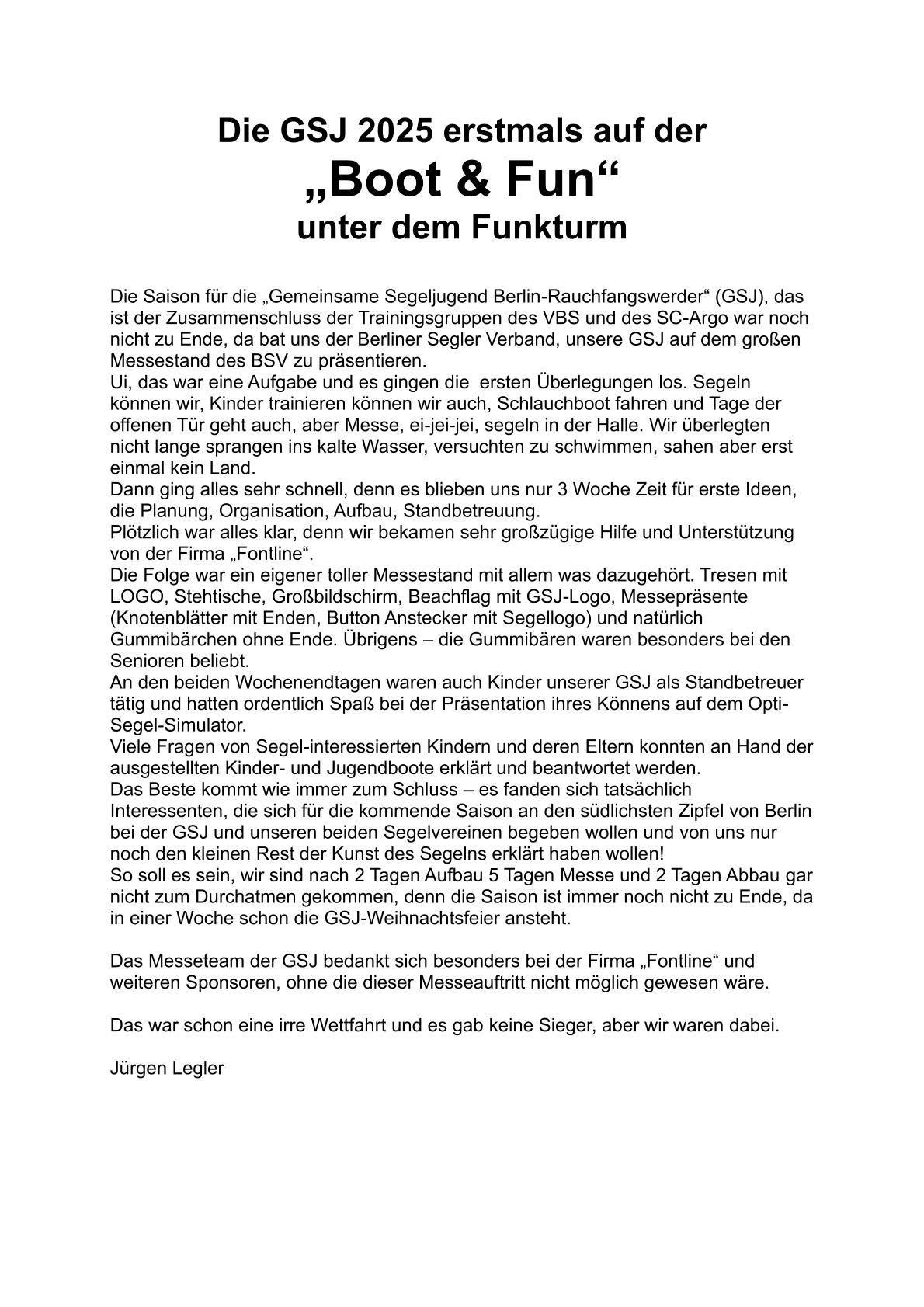 da wir ja das einzige Revier in Berlin sind, welches mit dem Verband Brandenburger Segler geteilt wird.