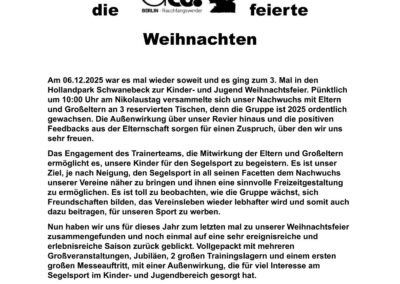 Es war für uns die letzte offizielle Veranstaltung in diesem Jahr, nach zwei Kinder- und Jugendtrainingslagern, der 140-Jahr-Feier und der Berliner Meisterschaft der Xylon-Jollen im Rahmen der Kehrausregatta.